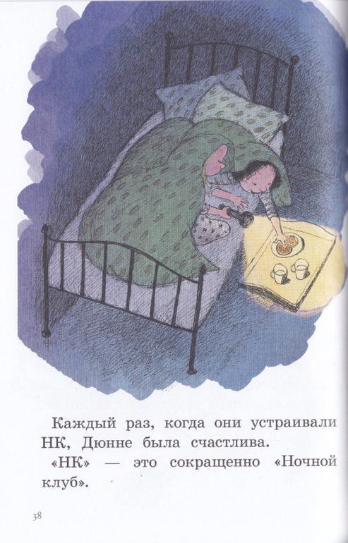 ... "Это такой клуб, встречи которого начинаются в десять вечера - и продолжаются сколько вам хочется. Там можно говорить обо всём, светить фонариком под одеялом и есть ночной завтрак - бутерброды с огурцом и сыром"...