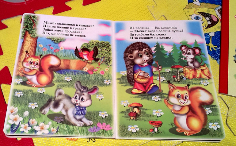 Книжка из этой же серии, "Познаем мир", повествует о том, как белочка искала солнце, которое спряталось за тучку. На каждой странице стишок и иллюстрация, сюжетная линия выдержана. Рассматриваем картинки и слушаем с удовольствием.