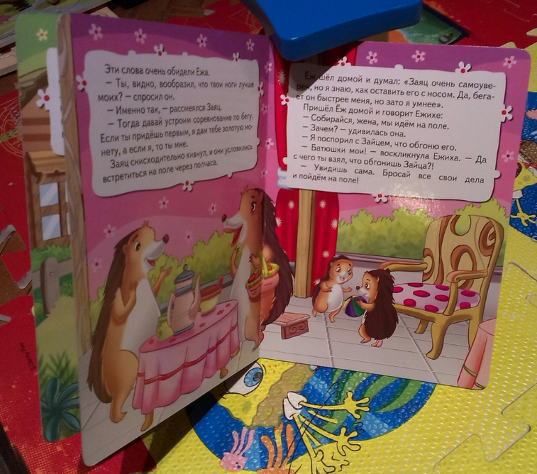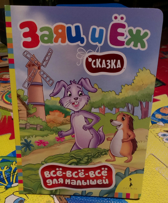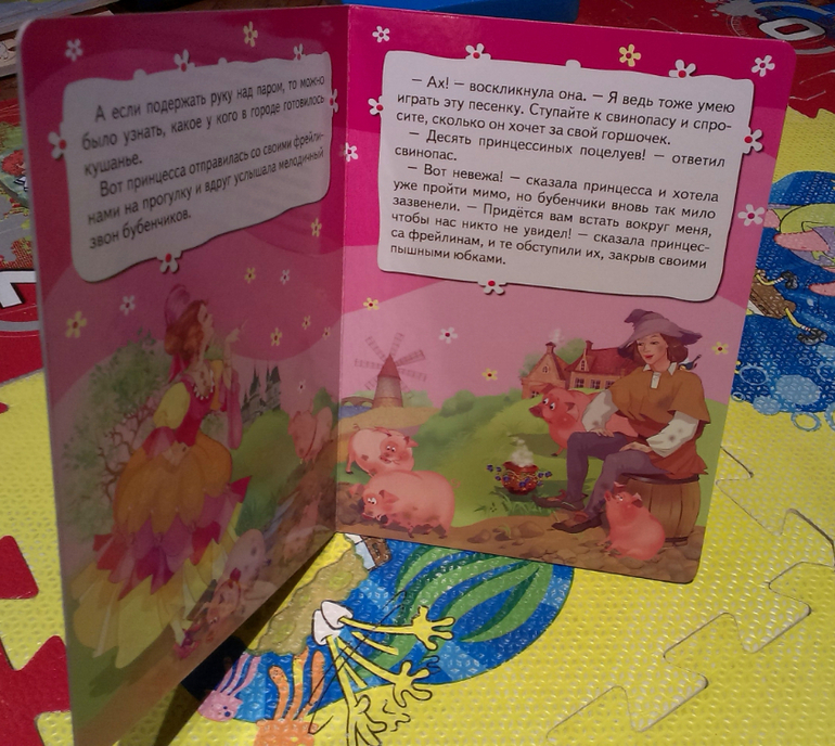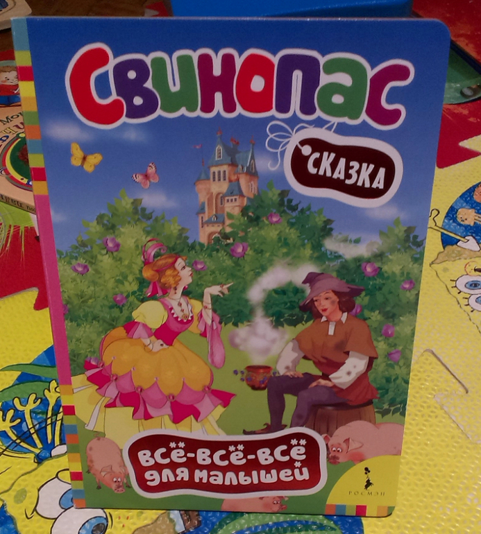 Далее подарок бабушки изд. Росмэн серия "Все-все-все для малышей" сказка "Заяц и Еж" (по мотивам Гримм) и "Свинопас". Сказки дочка не очень любит, поэтому эти книги у нас больше для разглядывания картинок, тем более они очень яркие и красочные, чем -то напоминают диснеевских персонажей.