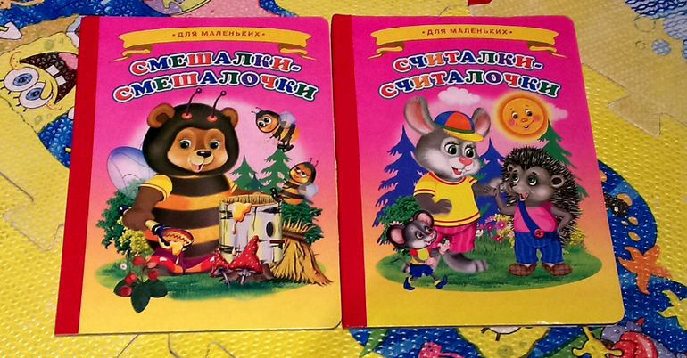 Серия "Ладушки - для маленьких" книги "Считалки- Считалочки" и "Смешалки- Смешалочки" автор обеих С. Михайлов. На каждой страничке забавный стишок и иллюстрация к нему, сюжетная линия не прослеживается. Ребенок с удовольствием разглядывает картинки и слушает стихи, конструкция книжек антивандальная :) на зуб не понравились :)