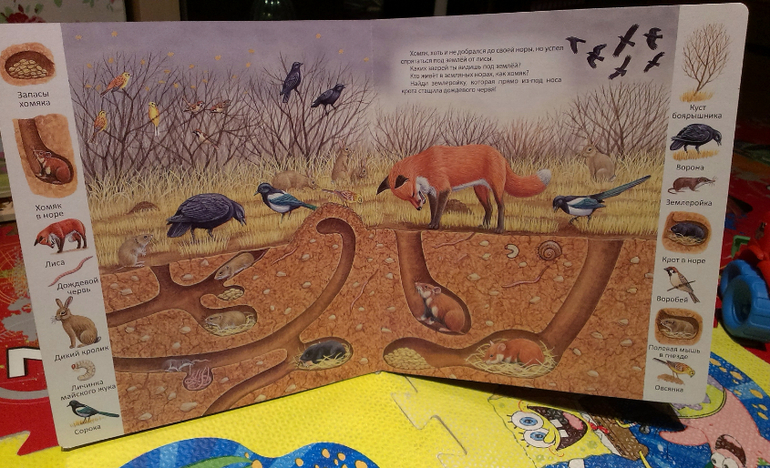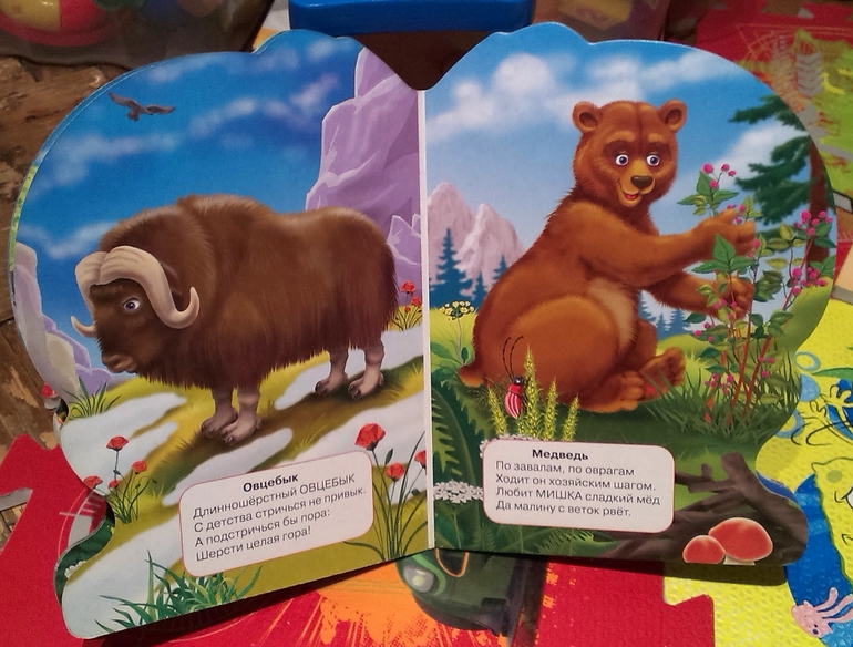Из данной книги узнали, что есть такой зверь как кабарга! Покупала в Фикс Прайсе, дочка и грызть пыталась и таскала за собой, схватившись за одну из страниц, но с книгой все ОК, правда вид уже потрепанный.