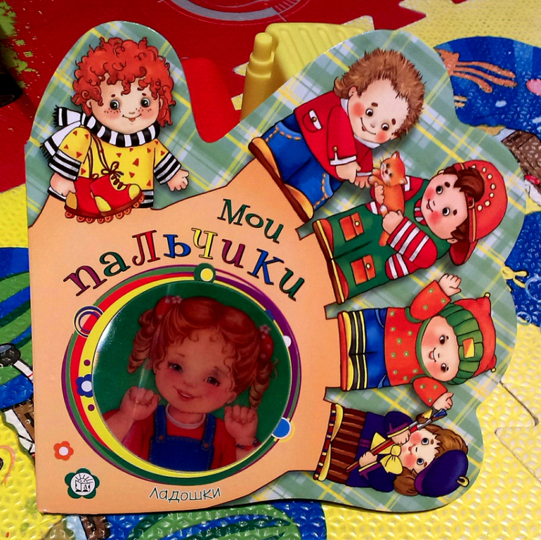 Также подарок бабушки книга "Мои пальчики" серия "Ладошки" изд. Лабиринт Пресс, автор стихов Е. Кмит. Книжка вырезана в виде ладошки с пальчиками, на обложке переливающийся рисунок.