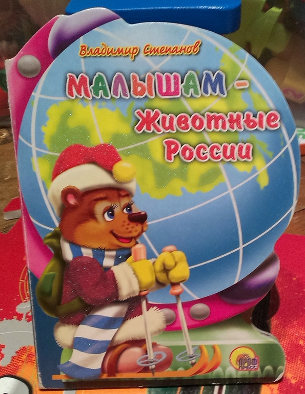 Первой книгой на нашей полочке стала В. Степанов "Малышам- животные России" изд. Проф-Пресс.