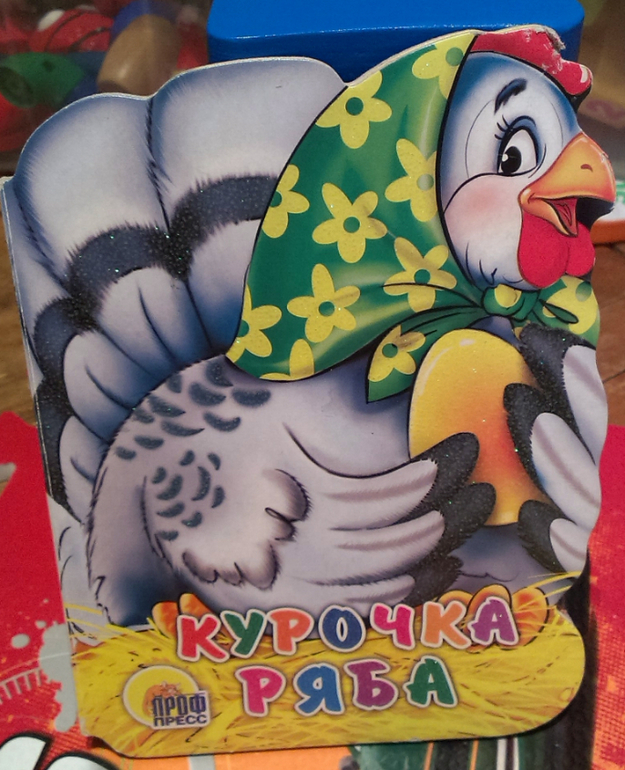 Далее все тоже изд. Проф-Пресс сказка "Курочка Ряба". Картинки красочные, но текст адаптирован под малышей, дочка пока к сказкам равнодушна, поэтому читаем редко, но разглядывать картинки любит.