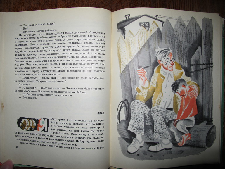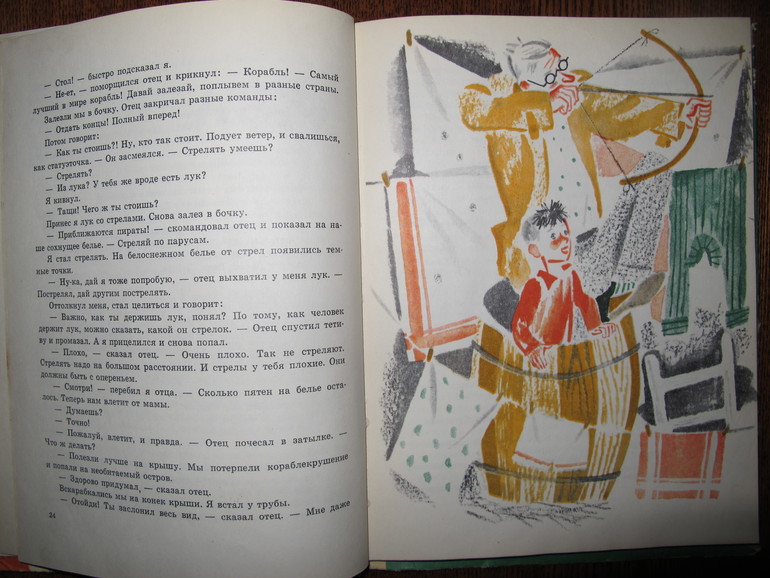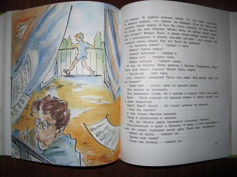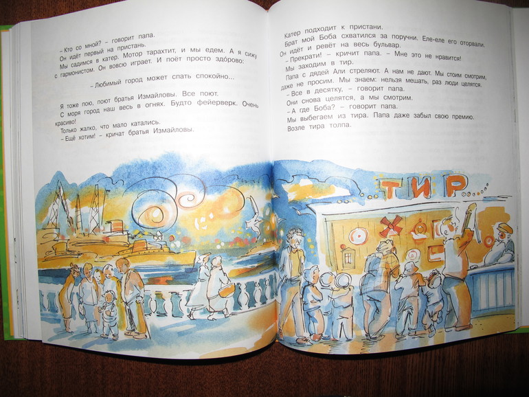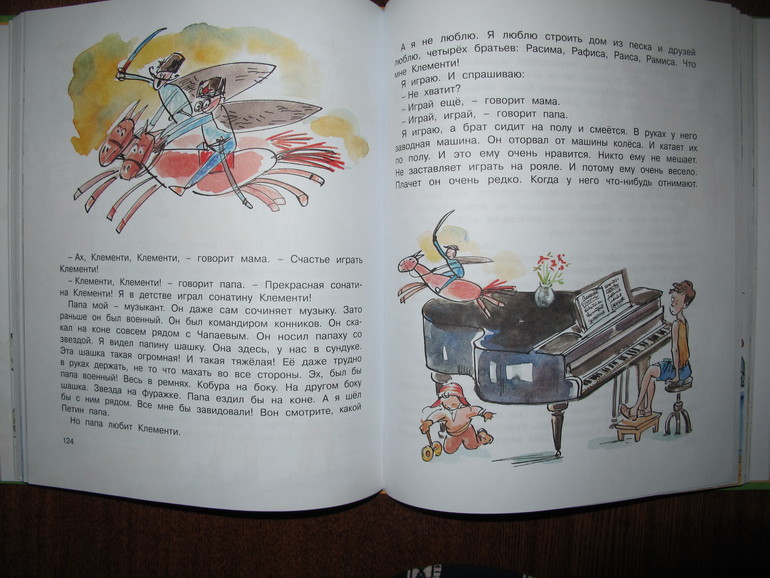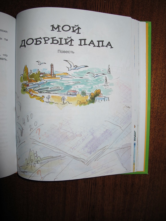 Первая повесть Виктора Голявкина "Мой добрый папа". Я читала её в сборнике издательства Махаон "Карусель в голове" 2013 года с иллюстрациями Натальи Кучеренко.