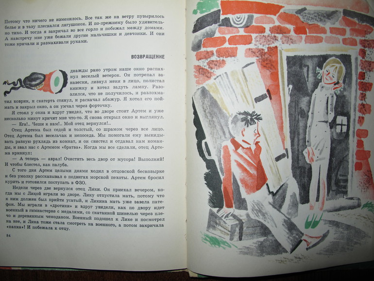 К сожалению, современного издания этого произведения я не нашла, видимо, его нет. А очень зря! Это повесть восхитительна! Если честно, мне она понравилась даже больше повести Виктора Голявкина. Может потому что я её прочитала первой, а может просто моё. Именно из-за неё и хотела написать пост, но потом решила и "Мой добрый папа" тоже включить в обзор. Образ мамы, папы, семьи мне более близок именно в произведении Леонида Сергеева. Эта повесть более детская что ли. Мне очень понравилось описание совместного времяпрепровождения сына и отца. Автор пишет о их совместных мечтах, и о их дурачиствах, о рыбалке, о играх, беседах. Всё это, как бальзам, легло мне на сердце! Чудесно! Также понравилось, что очень подробно описываются игры детей во дворе, сейчас так не играют, к сожалению. Описывается первая детская влюбленность или симпатия. Не смотря на грустный конец, книга очень позитивная! Обязательно буду её перечитывать не один раз. И всем рекомендую!