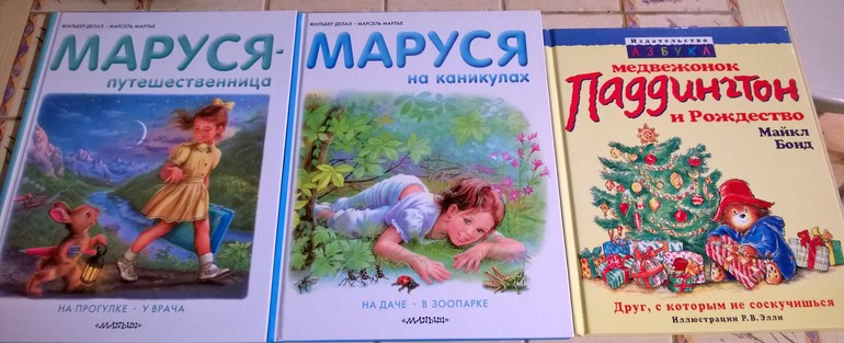 И еще меня покорила Маруся. Жильбер Делаэ, Марсель Марлье. Маруся на каникулах: На даче. В зоопарке. Маруся путешественница: На прогулке. У врача.) Мне достались только эти две книжечки. Беглого взгляда хватило на иллюстрации и темы, чтобы понять, что это чудесные книжечки. Сначала, еще в магазине, решила подарить их племяшкам, но дома уже не могла с ними расстаться. Кто то скажет " девчачьи книжки", но разве в таком юнном возрасте проблемы маленьких деток делятся на "мальчуковые" и "девчачьи", и уж если девчонки этого сообщества с удовольствием читают на ночь " Стройка баюшки-баю",