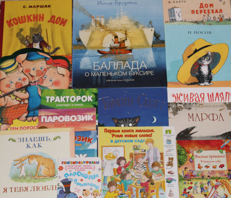 На первой фотографии - книги,которые сын приносит регулярно, а на второй - интерес к ним пока не возник или читаем только по моей инициативе.
