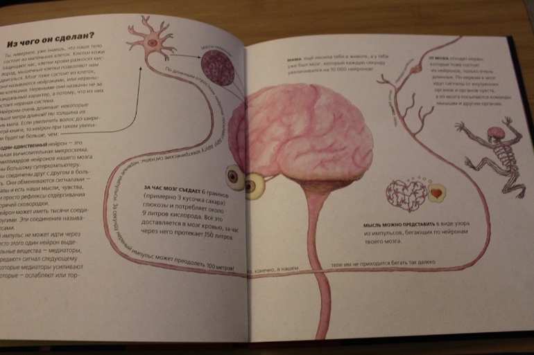 Какая интересная книга! Спасибо что показали. Как думаете для 6 лет рановато? Сын сейчас как раз интересуется мозгом, в разных аспектах, один неприятный. Увидел у товарища по кружку на планшете игру "зомби против растений", после этого много вопросов возникло про вытекание мозгов и так далее. Анатомический атлас от махаона подключили, "Главное чудо света" Юдина тоже, но вопросов они добавили.