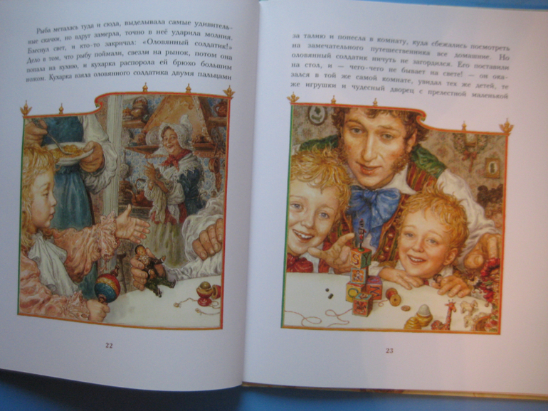 Именно в этой книге окончание "Стойкого оловянного солдатика" не такое, как в классическом варианте. У нас есть и классический вариант ( о нем чуть позже), в этой книге главных героев спасает мальчик, в конце любовь, хэппи энд и все счастливы)