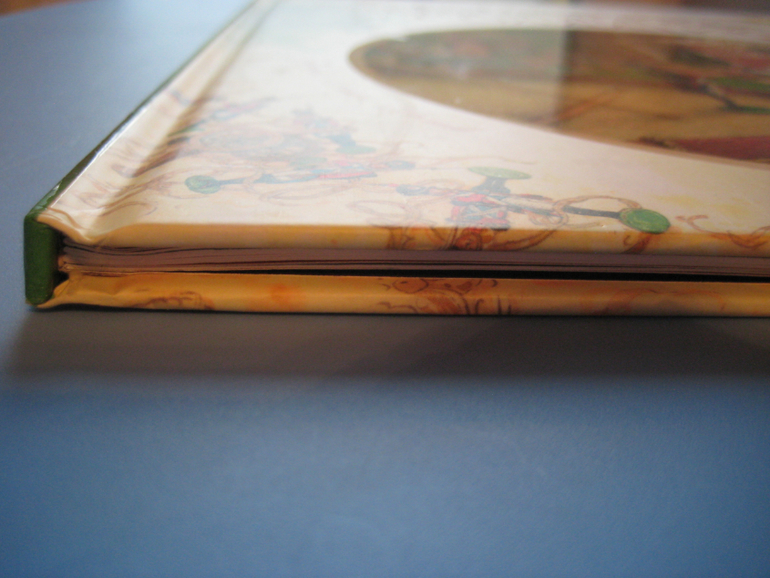Твердый переплет, глянцевая обложка, странички - плотный хороший офсет.