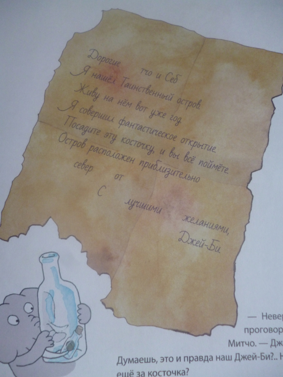 Главные герои - котенок и слоненок - вылавливают бутылку с посланием, и вот тут все и заворачивается.