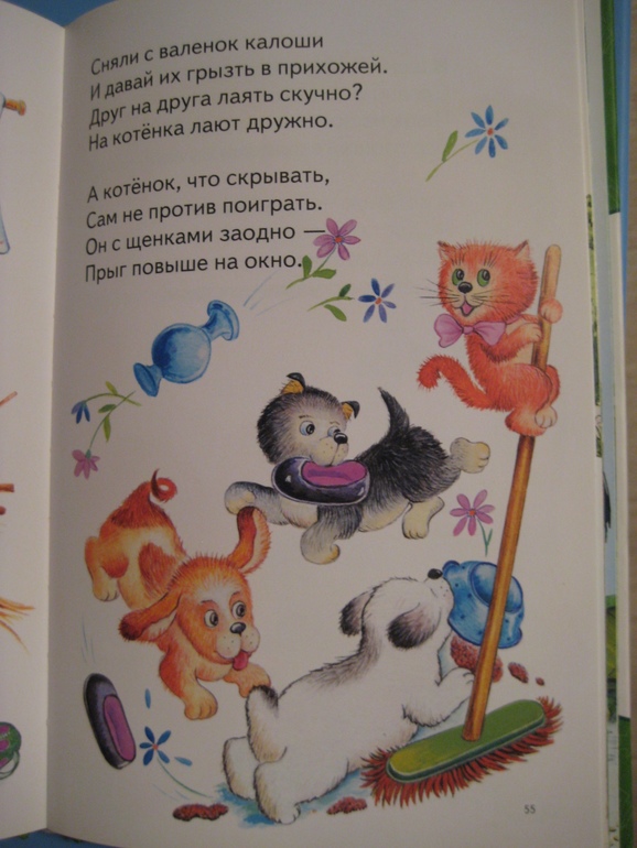 Сборник объединил стихи разных поэтов, проиллюстрировали эти стихи также разные художники - большую часть - Багинская Анна, мне ее иллюстрации пришлись по нраву: животные естественны и приятны, люди натуральны, в них угадывается мое детство, вообще все герои с тенью прошлого века на образах, какие-то теплые, несовременные, искренние и очень-очень добрые. Ну вот такое впечатление у меня от них создалось. Смотрите, например.