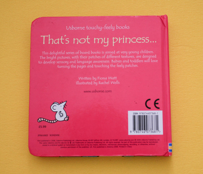 Тактильные вставки вклеены аккуратно, на каждом развороте малыш найдет новую. Но в разных книгах они конечно повторяются. Иллюстрации крупные, маленькому ребенку понятны и интересны. Текста минимум. Сюжет один - маленький белый мышонок ищет своего персонажа (принцессу, обезьянку, Санту, фею и т. д.)