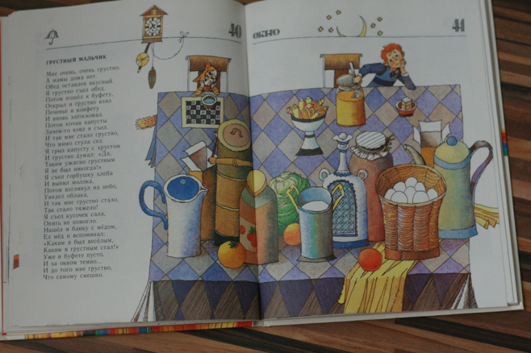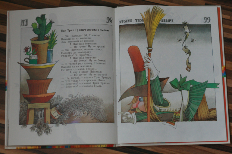 А вот эта книга впечатлила всю нашу семью, мы уже прочитали её несколько раз и все никак не решимся расстаться с ней. Замечательные стихи (мы узнали, что есть разноцветные кони, которые и в огне не не горят и в воде не тонут, прочитали про храбрую синичку, которая спасала примёрзнувшего ко льду Деда Мороза и, конечно же, познакомились с главным врагом пыли Тряп Тряпычем)