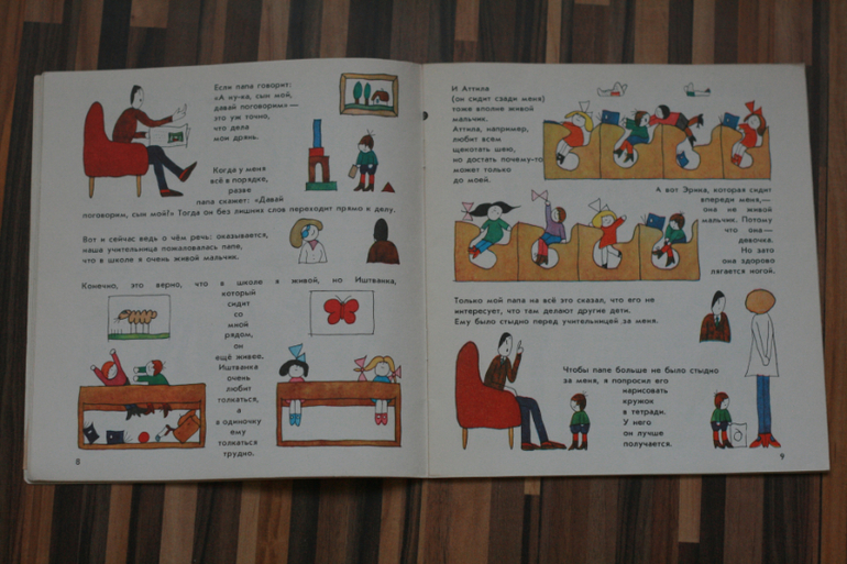 Вторая книжка неоднозначно-забавная, главный герой маленький мальчик, у которого есть старшая сестра и мама с папой. Малыш просто рассказывает о своих буднях,