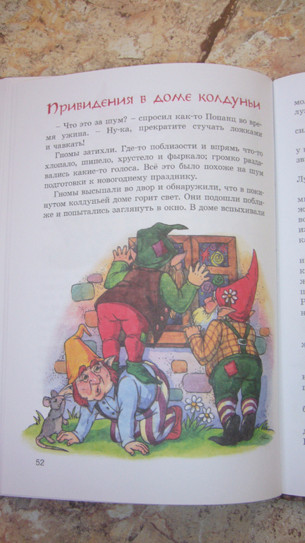 В книге 9 коротеньких и совершенно простеньких рассказов о жизни и быте семи гномов, которые каждый день не скучают, а что-нибудь изобретают, обсуждают и придумывают, а также пытаются ужиться со своей соседкой ведьмой по имени Саманта.