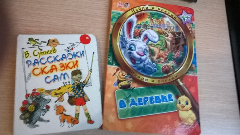 Вторая книга "В деревне" (которая рядом с "расскажи сказки сам" на фото) из серии "найди и покажи".