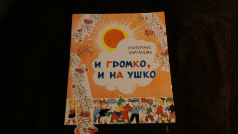 1. "И громко, и на ушко", Е.Карганова, изд. Речь. Тоненькая, простенькая и абсолютно из нашего советского детства! Лежала никому не нужная в самом дальнем уголке книжного магазинчика, куда я на минуточку забрела, ожидая мужа в ТЦ. Ее никто бы не купил, кроме меня. А я купила)) И не пожалела...Потому что стихи покорили нас с детьми своей простотой, легкостью и этакой детскостью...Это такие стихи, которые вне времени: вроде бы слышали их когда-то в детстве, а вроде и что-то новенькое...