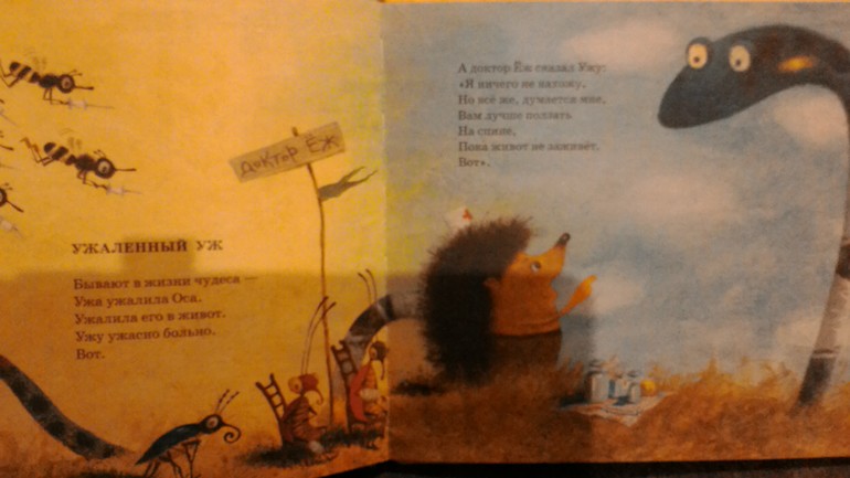 3. Ужаленный уж, Рената Муха, изд. Махаон. Эту книгу Степе подарила моя подруга, случайно заказав в какой-то закупке две вместо одной...В первый же вечер сели ее читать, ибо Степа обожает стихи, особенно новые. Сначала мне вообще не понравилась она, показалась какой-то банальной и с неинтересными сюжетами...Но это первые пару стихов...А потом, начиная с "Одинокой свинки, мое мнение изменилось кардинально! Стихи оказались такими емкими, интересными, с незамысловатой рифмой и тонким юмором! Юмором, понятным и взрослым, и детям. Оба мои разновозрастных чада с удовольствием их слушают-читают-учат. Вот уже сколько месяцев к ряду))