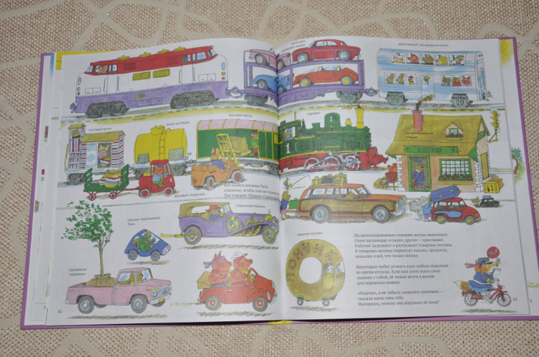 Заслуженного внимания "Книжка про машинки" (которая, к слову, совсем не "книжка", а, скорее, "книжища") дождалась буквально пару месяцев назад - вот теперь Артуру стало интересно разглядывать детали и обсуждать технику и сюжет, который тут тоже есть.