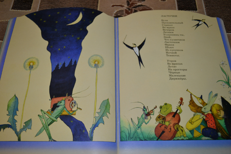 Ранее я была не знакома с этим замечательным автором, да и, если признаться, когда я взяла эту книгу в руки первый раз, она меня не впечатлила.Но потом, когда мы начали её читать с сыном, она нам так понравилась!Эти чудесные, добрые стихи, которые, как мне кажется, я уже слышала раньше, и иллюстрации, которые было так интересно разглядывать нам обоим!Не побоюсь этого слова - книга стала у нас хитом!Читаем очень часто и сын сам её приносит!А когда мы взяли краски и стали смешивать так, как написано в одном из стихотворений, и у нас получилось именно так, как должно быть, то полюбили эту книгу ещё больше! Танюша ,спасибо тебе за неё!