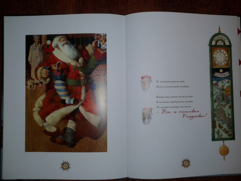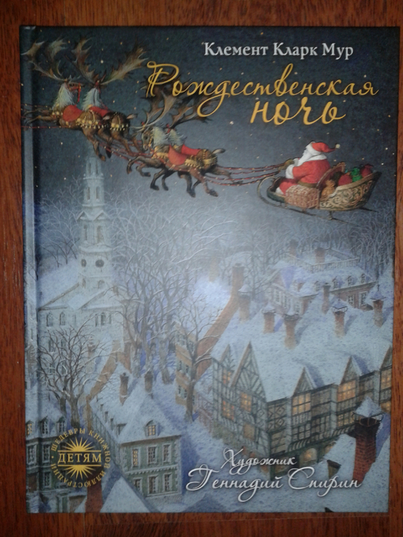 Это известное стихотворение Клемента Кларка Мура с иллюстрациями Спирина, которые прекрасно создают предпраздничную атмосферу. Правда есть сомнения, что в этом возрасте стихотворение не будет понятно… посмотрим!