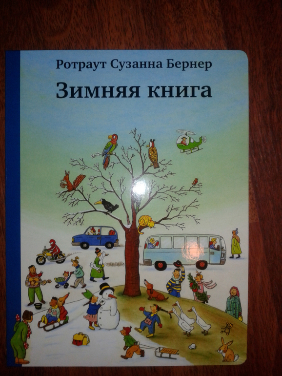 Ооооо, как я давно ее хотела и, наконец, созрела. Это виммельбух - книга для разглядывания, в которой совсем нет текста. Только имена и минимальные данные о персонажах на задней стороне обложки. То есть автор дает нам отправную точку, например девочка, которая шла на каток нашла кошелек мужчины, который каждое утро бегает в парке. А мы уже должны с каждым разом (с каждым новым прочтением) добавлять (придумывать) все больше и больше фактов. Желательно их придумывать вместе с ребенком. Например, девочка, которая нашла кошелек сначала хотела отнести его в бюро находок, а еще у нее есть хорек, которого она повсюду берет с собой, но в этот раз хорек остался дома, так как на улице уже было морозно. --- это я сейчас придумала на ходу.