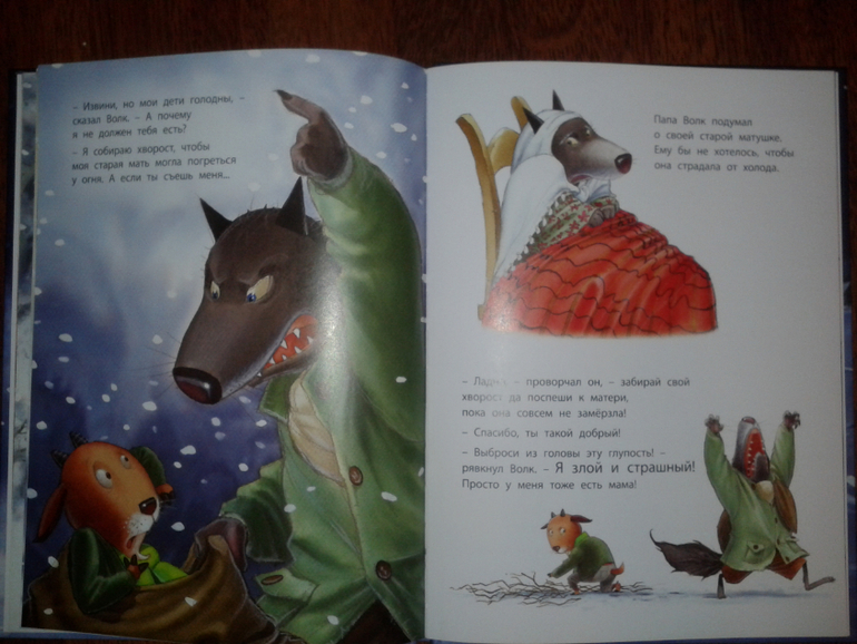 Все "спасенные" звери благодарили его и обращали внимание на то, какой он милый, а волк всю книгу уверял их и самого себя, что он злой и страшный))).