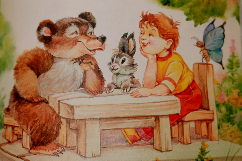 Большинство произведений в книге вот такие душевные. Они рассказывают о доброте, отзывчивости, о вредных привычках, есть несколько волшебных историй. Много стихов о природных явлениях, о зверях, о дружбе человека и животных. Когда все это в пухлой обложке, да еще и с яркими иллюстрациями Владимира Коркина…. МММ.. Каждый раз, когда беру книгу в руки на душе становится как-то теплее.