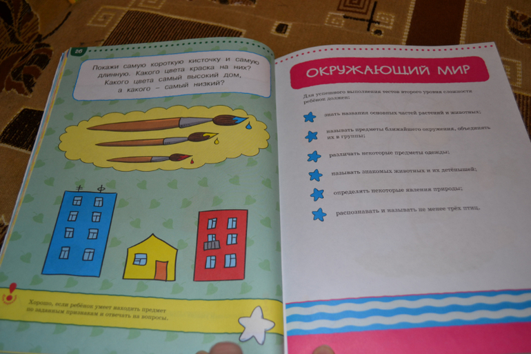 Недавно попались нам другие тесты - от издательства "Стрекоза".Автор Попова.Как они нам понравились!Вот казалось бы - у Земцовой все темы рассмотерны!Ан нет!В этих тестах другие задания!Поэтому и интересна так оказалась для нас эта книга!Больше всего нам понравилось задание про пуговицы и задания на тренировку памяти)) А ещё приятный бонус - рисовать собачке внизу страницы улыбку в зависимости от правильности выполнения.Вообщем, рекомендую эти тесты - просто замечательные!