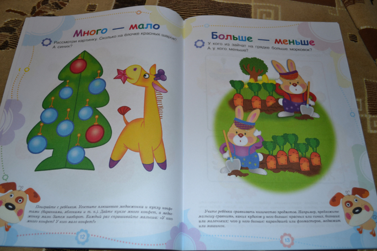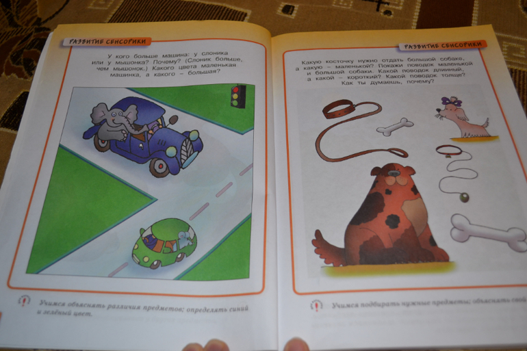 Тесты Земцовой всем хорошо знакомы.Любим их и мы.Причём любим именно тесты.Тонкие книги игнорим.И вот вроде бы ничего особенного в заданиях, а ребёнок у меня в свои 2,5 г. идеально различает все цвета вплоть до оттенков, знает понятия "большой-маленький", "много-мало" и т.п.И по бОльшей части это заслуга тестов.Кстати, в садике на собрании родителям тоже их рекомендовали) Самые любимые у нас - "Первые шаги" и "От простого к сложному".И одно из любимого - зарядка!Стыдно признаться, но зарядку мы не делаем.А тут, по картинкам с огромным удовольствием!Сам тащит книги, открывает нужную страницу и начинает изображать))) Жаль, что зарядка есть только в первых двух книгах(( Диме уже по силам многое из тестов 3-4, ему почему-то всё равно больше нравится выполнять уже знакомые задания, которые для него проще простого))) Грамотейка хоть и идёт 2-3, но сложновата даже для нас.Кстати, во время выполнения заданий сама додумываю вопросы, чтобы посложнее было.Дима сначала терялся, а сейчас ему даже нравятся такие вопросики "на засыпку"))) Ну, и покажу развороты:
