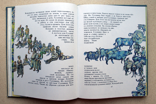 В книге две части: путешествие в Лилипутию и путешествие в Бробдингнег