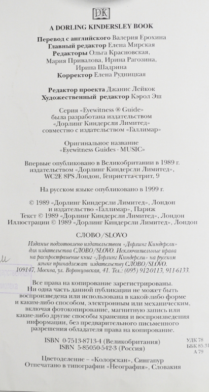 Энциклопедия о музыке, Dorling Kindersley/Слово, 1999