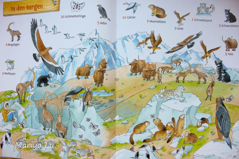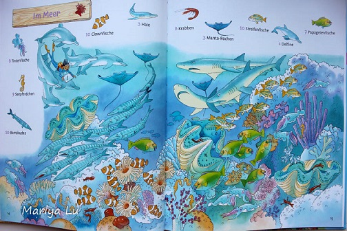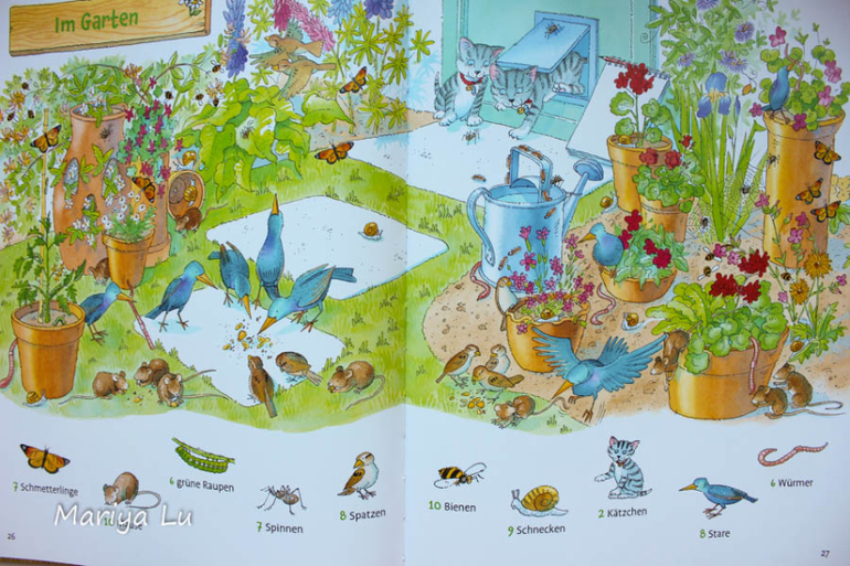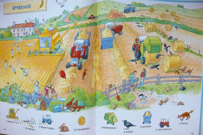 На страницах книги дополнительно даны задания на поиск,причем животные,предметы даны в разном количестве, что очень хорошо тренирует счет до 10.