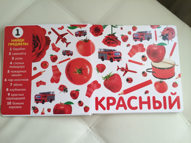 спасибо за ваш пост, по вашей рекомендации нашла такую книгу и у нас в РБ, закажу дочке. У нас есть вариант попроще совсем для маленьких: на развороте с одной стороны страница определенного цвета, с другой стороны предмет такого цвета, мы эту книгу уже переросли. Показанный вами вариант можно смело листать лет до трех.