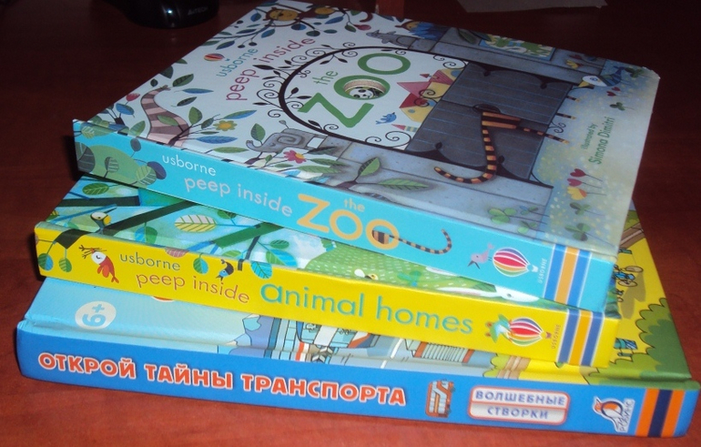 Для Дашутки же сейчас интересны картонки с окошками на английском языке The zoo, Animal homes.