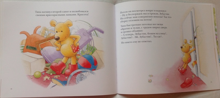 На самом деле подобрать двухлетнему ребенку подходящие по по возрасту книги не так просто. Я обычно стараюсь ориентироваться на соотношение текста и картинок, но это не всегда актуально - текст бывает скучный, не понятный ребенку или перегруженный каким-то философским смыслом. Здесь все отлично - истории очень веселые, живые и при этом соответстуют небольшому опыту двухлетки. Текста не так уж мало, но он удерживает внимание ребенка, много повторений и звукоподражаний. Иллюстрации полностью, до мелочей соответсвуют тексту, прорисовано практически каждое действие.