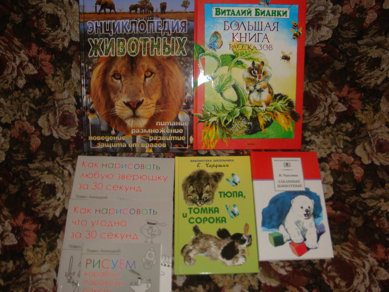 На фото не попала тоненькая книжечка Бианки Хвосты, (Read, My-shop) дети утащили читать. Большеформатная, почти с Энциклопедию животных размером, глянцевые крепкие странички, шикарные иллюстрации. Очень понравилась.