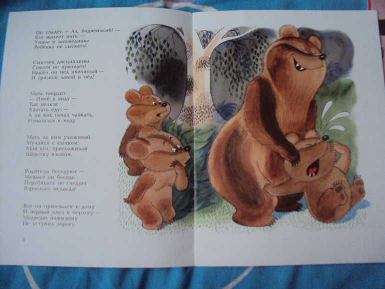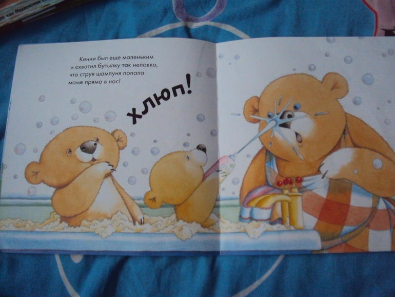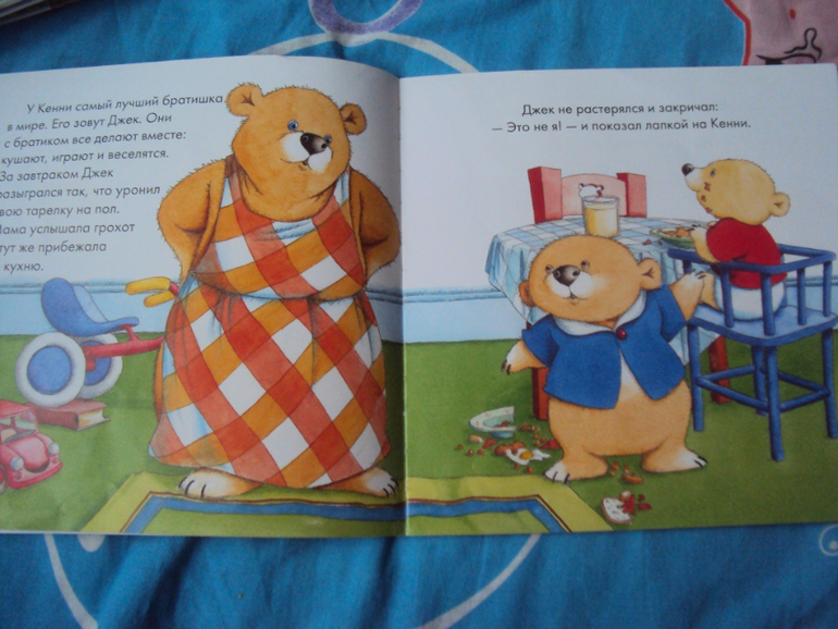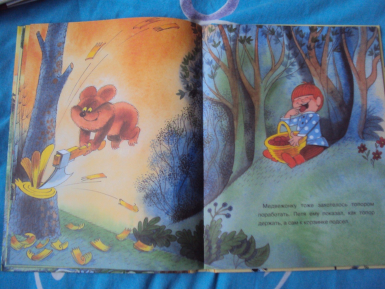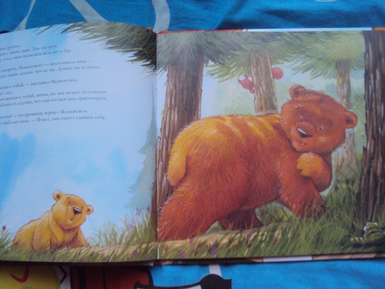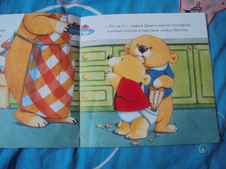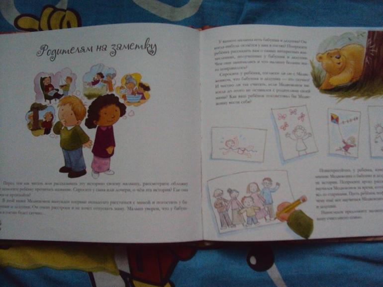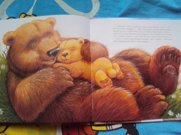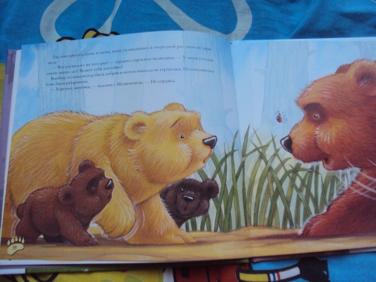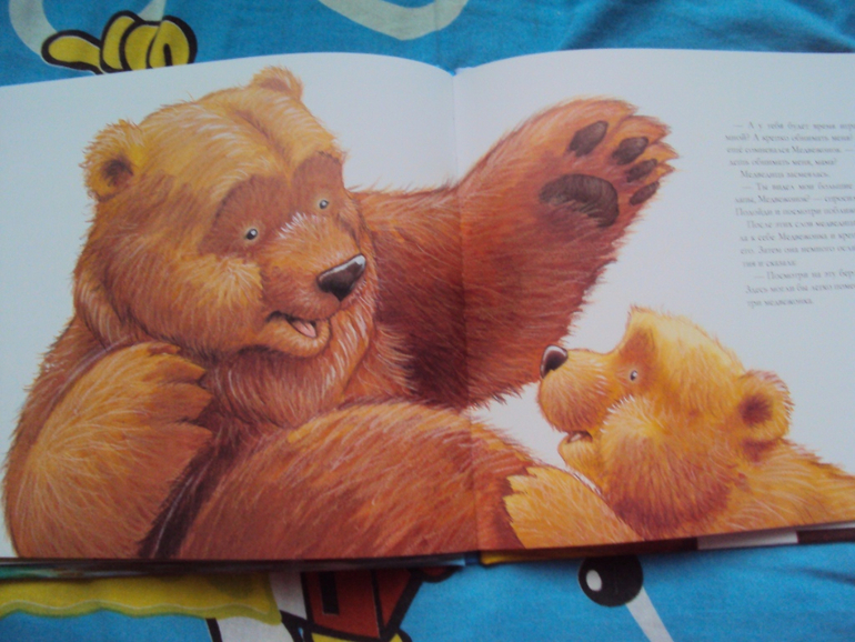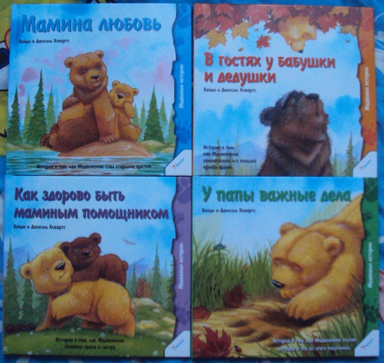 Остановлюсь чуть подробнее на медвежьих историях. Это серия из четырех книг, в которых затронуты ситуации в которые попадает почти каждый ребенок. История о том как медвежонок скучал по папе, как стал старшим братом и стал маминым помощником, а так же о том как пришлось расстаться с родителями, побыв у бабушки с дедушкой. В конце каждой книги есть страничка для родителей на заданную тему (по сюжету прочитанной истории), предлагается проработать ситуацию, понять, принять и возможно даже решить возникшую проблему.