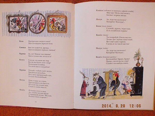 Теперь о качестве. Книгу издал Мелик-Пашаев, книжечки у них всегда очень хорошего качества. Напечатано отлично: сочно, ярко, вкусно. Но книгу все же стоит читать аккуратно. Мы ее читаем давно и аккуратно, но переплет (как бы это сказать) начинает растрескиваться. Нет, листы не выпадают и не выпадут. Просто на одном развороте это смотрится не эстетично. Хотя возможно это просто у нас такая книга.