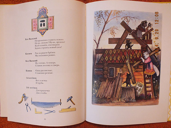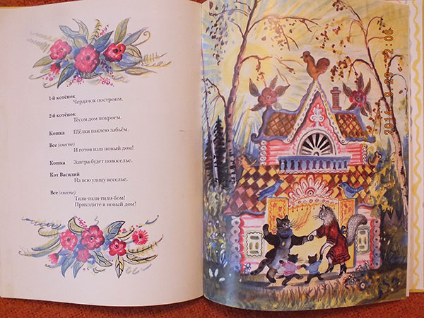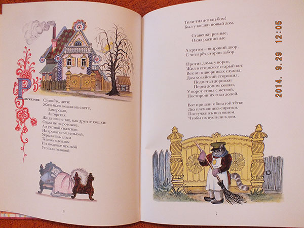Очень Семену (и мне тоже) понравился мультфильм "Кошкин дом", он отрисован по эскизам Васнецова, который и нарисовал нашу книжечку. И она мне очень нравится. Стоит сказать, что Васнецова ребенок очень любит, до сих пор потешки с его рисунками очень любимы. Хотя уже не так, как раньше. Растет читатель. Поэтому еще года полтора назад я даже не сомневалась: брать или не брать. Это же Маршак! Это же Васнецов! В нашем случае это 100% попадание. Так и получилось. Книга очень нравится.