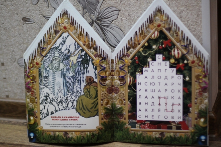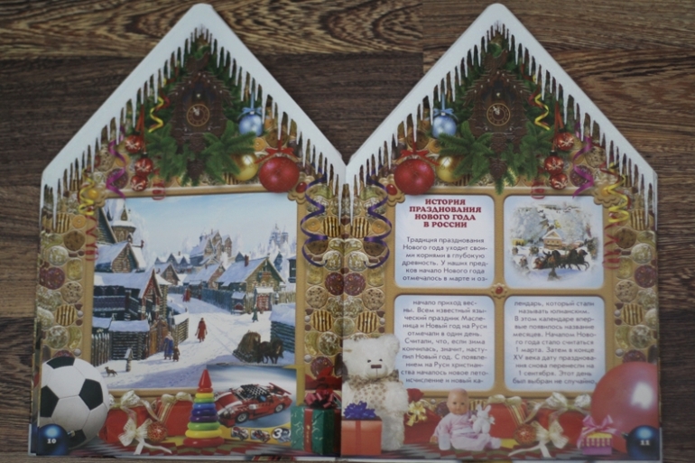 Два разворота посвящены истории празднования Нового года в России - все очень-очень кратко. Хорошо иметь под рукой ещё пару книг, чтобы ответить на все возникшие вопросы :)
