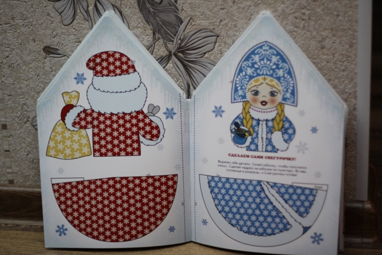 Есть в книге заготовки для поделок - елочных шаров и объемных фигурок Деда Мороза и Снегурочки