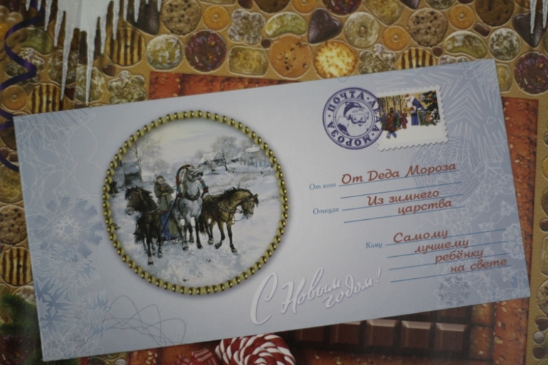 А здесь и без стихотворения интересно - настоящее письмо от Деда Мороза из зимнего царства :) В конверте, с печатью и сказочной маркой :)