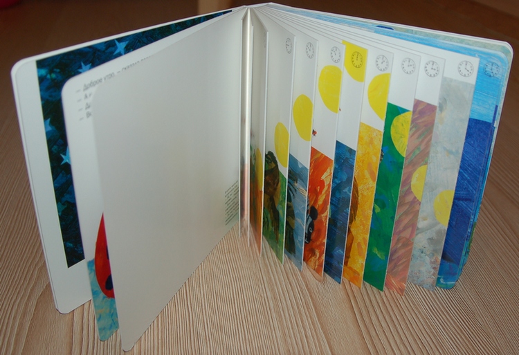 Теперь расскажу о маленьких картонных книжках-кубиках от Клевера. Первый раз я дала их детям месяцев в восемь. Не успела дать, как несколько были обжеваны, забрала. Потом еще несколько раз предлагала, но решила больше не травмировать кубики и убрала на полку. И вот опять достала в 1,4. Свершилось чудо, дети перестали их грызть. Смотрят, листают, тыкают пальчиками, составляют в башенки, вставляют в гнезда в коробке. Мне тоже они очень нравятся. Муж даже изъявил желание купить кубики на иностранном языке.А теперь немного " не картонок".