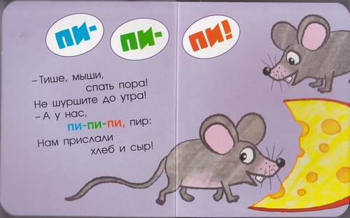 "Звуки" в стихотворной форме озвучивают одушевленные и неодушевленные предметы - машину, петуха, часы, паровозик, мышку... и даже сосульку! Очень прикольные стихи, но детям пока нравятся только картинки. Вообще, уже несколько раз встречала в сообществе мысль, что мальчики начинают слушать тексты позже.