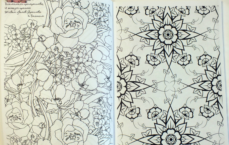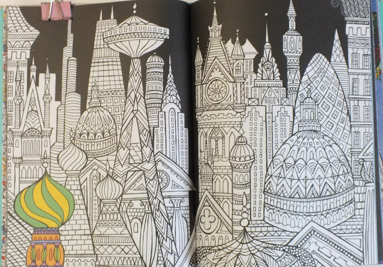 Что в этой книге больше понравилось - разнообразные мотивы от простых орнаментов, до каких-то сказочных зверей) Есть страницы не только для раскрашивания, но и для дорисовывания сюжетов/узоров. есть страницы цветные, есть ч/б. В общем на любой вкус, цвет и настроение! Книга весьма объемная, увесистая. Такую лучше определить в каком-нибудь одном месте, рядом со стаканчиком цветных карандашей)