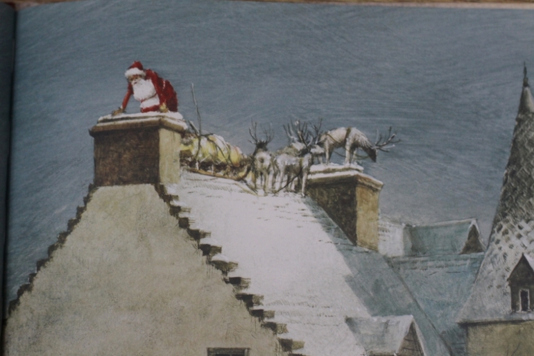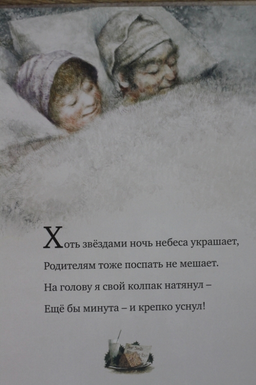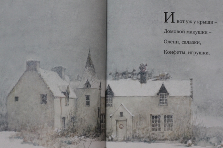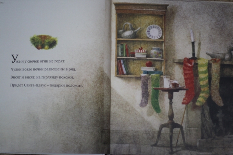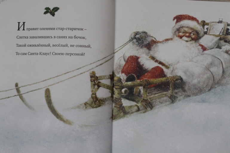 В книге известное стихотворение Клемента Кларка Мунка в переводе Ирины Токмаковой. Красивое, с настоящим рождественским настроением, с чудесными описаниями. Читается легко и непринужденно. Иллюстрации - просто слов нет, очень трепетно воспринимаю работы Роберта Ингпена - такие они живые, настоящие. И хотя уже узнаю его манеру, каждый раз, открывая новые книги с его иллюстрациями смотрю во все глаза, выхватывая интересные детали, или просто наслаждаюсь картинкой в целом... Ну сейчас не обо мне :))))