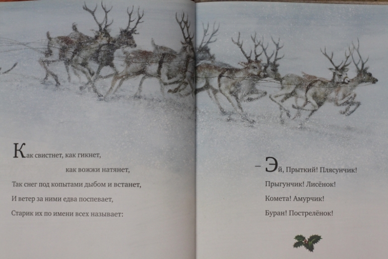 О книге - большая, красивая, на мелованной бумаге. Полиграфия достойная - можно рассмотреть штрихи на иллюстрациях, и снежинки действительно летят, а не лежат белыми пятнами :)